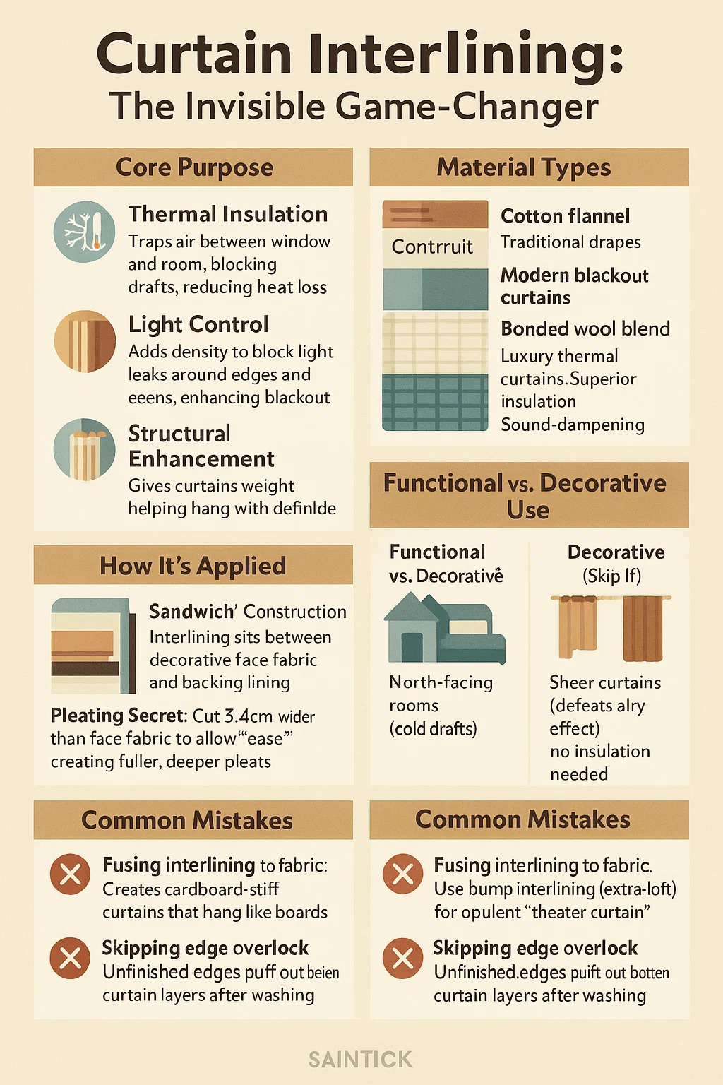 Väri Asiat: Käytä valkoista/kerma-välivuorausta valokankaiden takana—dark-tyypit varjostavat pellavan tai silkin kautta.