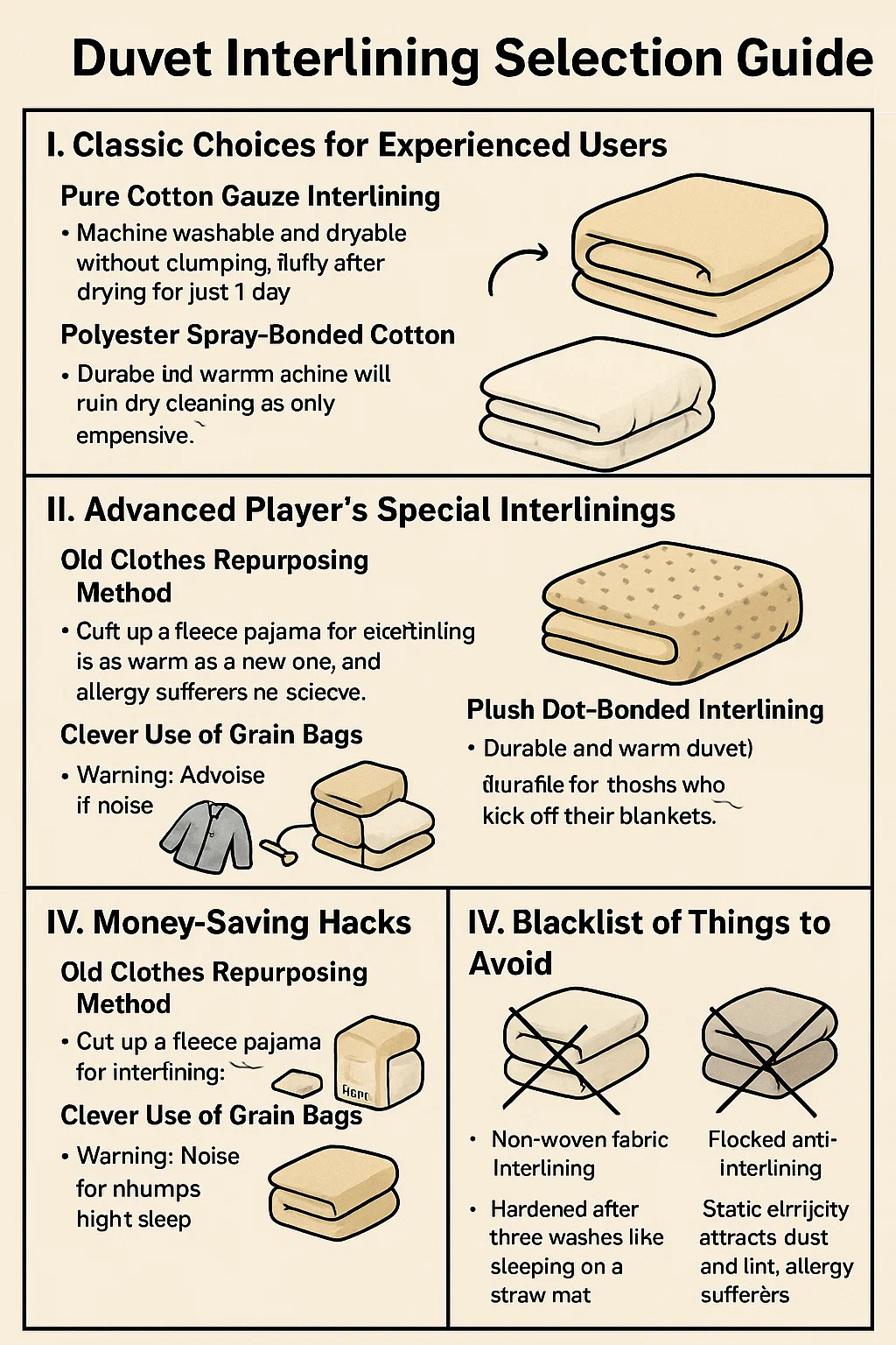 • Flocked Interlineing: Staattinen sähkö houkuttelee pölyä ja nukkaa; allergikot aivastavat koko yön.